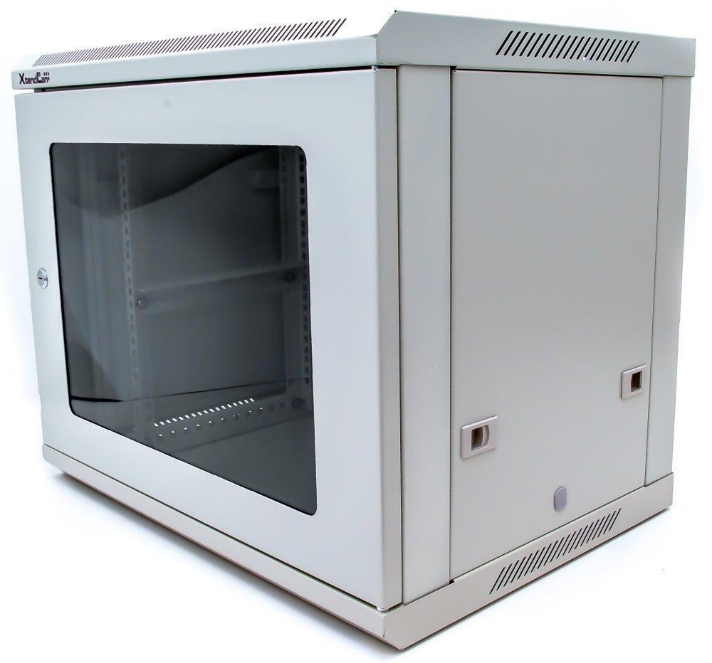 Popis XtendLan 19" nástěnný rozvaděč 9U 600x450, nosnost 60 kg, skleněné kouřové dveře, svařovaný, šedý