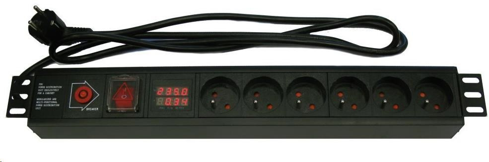 19'' rozvodný panel XtendLan 6x 230V, ČSN, vypínač, nadproudová ochrana 16A, měření spotřeby, kabel 1,8m, 1,5U