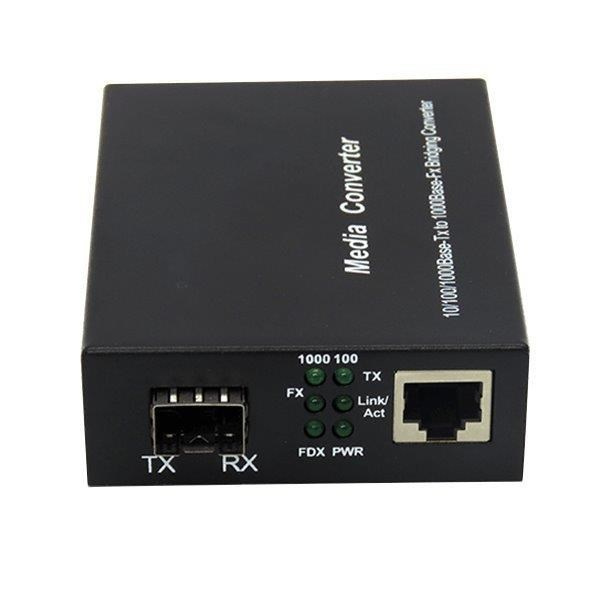 XtendLan XL-GT805A Konvertor převádí optický Gigabitový Ethernet přes vložený modul miniGBIC (SFP) na metalický Ethernet. Zařízení disponuje jedením ethernetovým portem 10/100/1000 Mbps a jedním optickým portem 1,25 Gbps. Umožňuje propojení přes optické vlákno až na vzdálenost 100 km. Maximální délka metalického spoje je 100 m. Výhodami jsou vysoká izolační ochrana, dobrá bezpečnost dat, pracovní stabilita a snadná údržba. Konvertor pro přechod mezi metalickým a optickým spojem pro Gigabitový Ethernet. Nutné zakoupit SFP optický modul. Automatická detekce rychlosti připojeného přepínače 10/100/1000 Mbps. ZÁKLADNÍ SPECIFIKACE Konektory: 1x RJ-45, 1x SFP Napájení z externího adaptéru: 5 V, příkon do 3 W, napájecí zdroj je součástí balení JumboFrame: 9 KB Rozměry: 94 x 70 x 26 mm Hmotnost: 350 g.