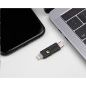 YubiKey 5Ci představuje nejnovější zařízení z poslední generace tokenů, která podporuje vícefaktorovou autentizaci, přihlašování bez hesla a řadu šifrovacích protokolů. Připojuje se přes USB-C port a Lightning konektor. S využitím obyčejného dotyku Vašeho prstu chrání Yubikey přístup k počítačům, sítím a online službám. Yubikey 5Ci nabízí bezpečí, které je široce využíváno jak největšími korporacemi, tak koncovými spotřebiteli, kteří mají zájem chránit si své soukromí.