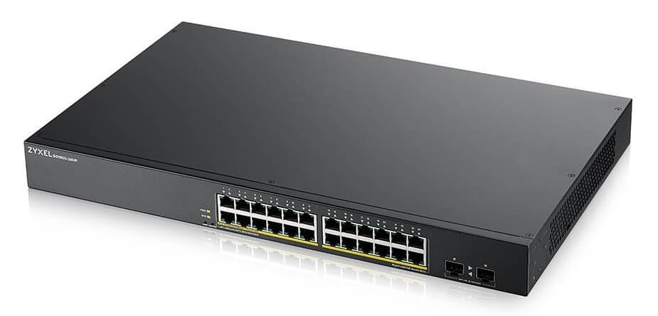 Zyxel GS1900-24HP v2 26-port Gigabit Web Smart PoE Switch, 24x gigabit RJ45, 2x SFP, PoE budget 170W