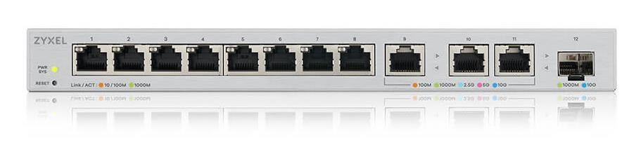 Popis Zyxel XGS1250-12 v2, 12-Port Gigabit webmanaged Desktop Switch with 8 port 1G + 3-Port MultiGig 1/2.5/5/10G + 1-Port SFP